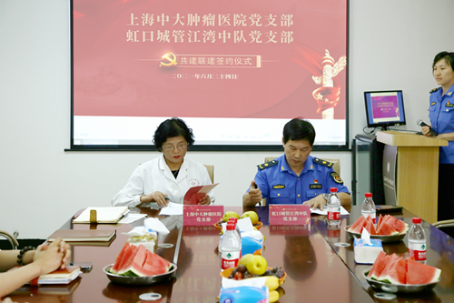 7.1建党节即将到来,中国共产党迎来了百岁诞辰。正值建党100周年之际,上海中大肿瘤医院党支部与虹口城管江湾中队共同携手,签订共建联建协议,签约仪式于6月24日下午在上海中大肿瘤医院行政楼举行。我院党支部书记、院领导以及相关职能科室负责人共同参加了签约仪式。