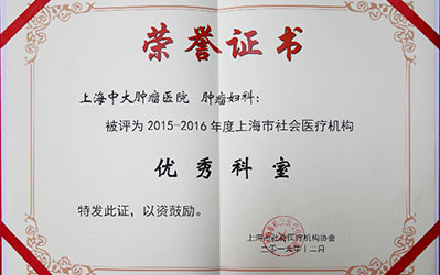 曾获肿瘤妇科优秀科室
