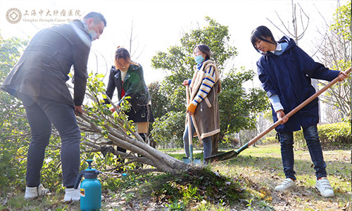 数年来,我院始终秉承这一美好传统,让我们的医务人员参与植树节活动,为魔都播种绿色,为肿瘤患者祈福。也希望有更多的人可以参与进来,让植树造林人人有责,让播种生命希望的精神永远传承下去,绿化魔都大地,共创美好家园!