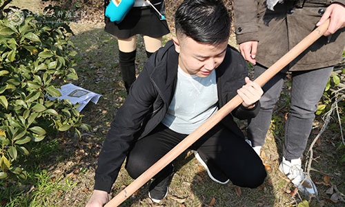 为了让树苗能够更好地吸收营养,负责拔除杂草的同志们如火如荼的卖力劳动着。不顾被汗水打湿的冬装,划伤的手指,沾了泥土的衣服,完全忘记了时间。大家看着自己的劳动成果——一颗颗挺拔而立的树苗时,脸上都露出了心满意足的笑容,因为大家深知这些树苗象征着新的生命,新的希望,也带着自己为患者衷心的祈福。