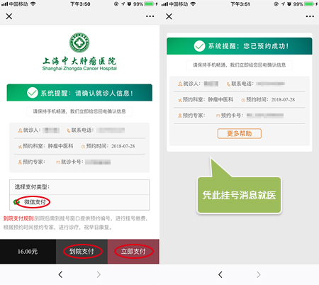 Q3.次来到上海中大肿瘤医院看病,可以使用微信服务号挂号吗?