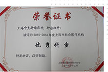 上海中大肿瘤医院妇科被评为2015~2016年度上海市社会医疗机构“优秀科室”,以表彰我院始终推进并强化医疗质量和医疗安全,不断优化服务升级,为患者提供有品质的医疗服务,在推进上海市社会医疗机构的健康发展中做出新的贡献。