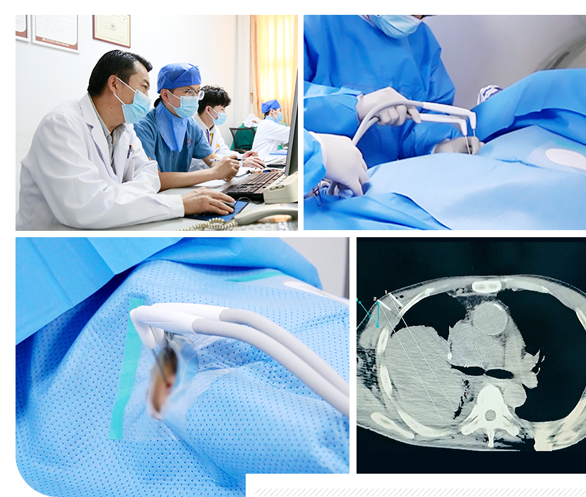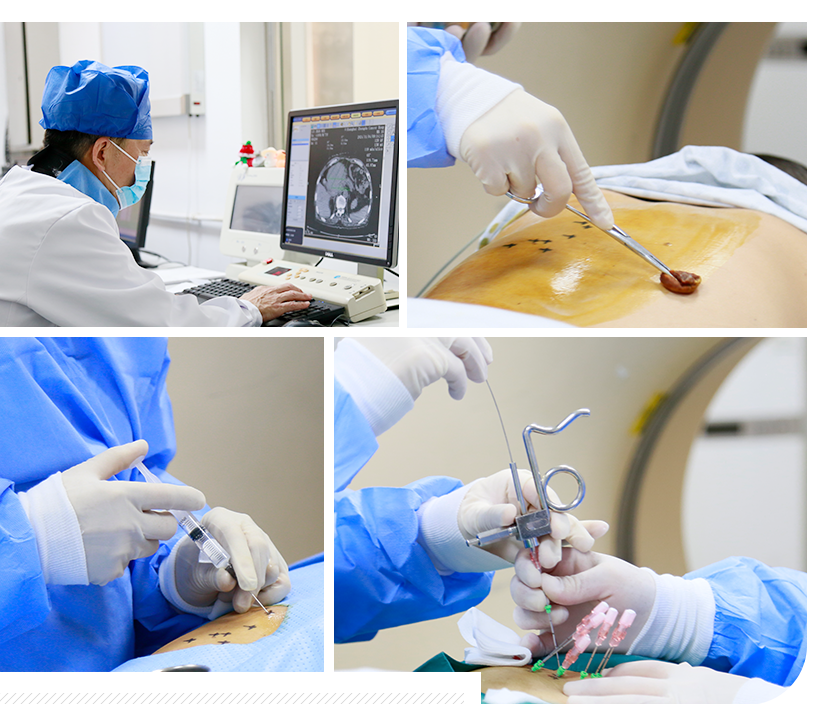 在CT的引导下进行,无需开刀,通过一根“针”将其植入到肿瘤内,进而摧毁肿瘤。被植入的每一个碘125粒子都像一个小太阳,通过医生的“排兵布阵”, 精准作用于肿瘤组织内部,粒子源发出持续低能量的y射线,使肿瘤组织失去活性。